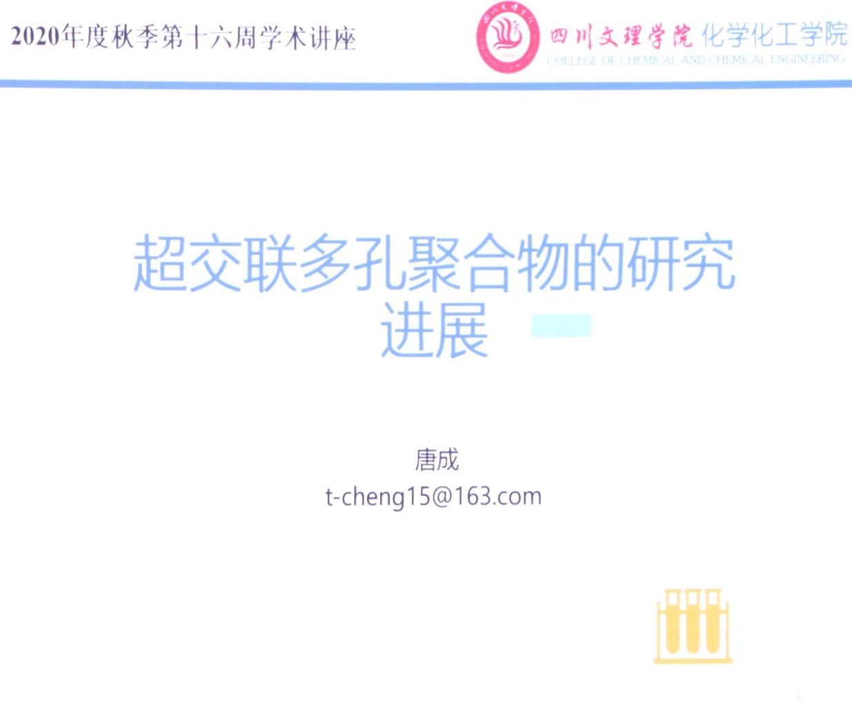 唐成老师作“超交联多孔聚合物的研究进展”学术讲座