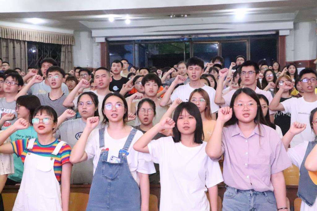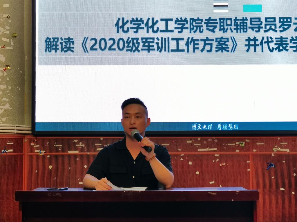 大会伊始,罗老师就《2019级军训工作方案》进行解读,详细的讲解了军训课程和具体要求,提醒同学们安全参训,并对同学们的各种疑问进行了详细回答。随后罗老师要求大家用顽强的意志敢于吃苦、勇于拼搏,发扬“艰难困苦,玉汝于成”的文理精神,成功完成军训任务。学生会主席王渝同学带领2019级全体同学集体誓师,表达了同学们对高标准完成军训任务的信心和决心,一声声誓言令同学们热血沸腾,充满斗志。最后全体参会人员一同观看了《77779193永利集团2020级军训专题片》,同学们通过这个短片初步了解了军训生活,激发了他们对军训生活的期待。