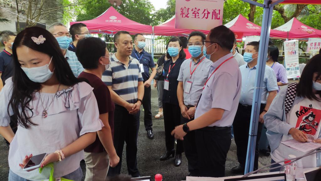 报道当天发放校园卡,新生手册,宿舍钥匙等物品及辅助新生完成个人信息核对等相关事宜。迎新工作进行得如火如荼,迎新现场也严格的按照流程进行。随着新同学陆续的到来。志愿者们首先帮助他们把行李寄存好,随后有条不紊的引领新生完成报到的所有程序,在志愿者的陪同下报道程序简单快速。院领导和老师对同学们关于政策、学习、生活等方面的疑问进行了详细解答,并予以鼓励,真正做到了:沟通零距离。对于省外报到新生,在进入校园第一时间就由志愿者带领前往校医院做二次核酸检测,坚决抓好防疫工作贯彻落实。当天下午刁永锋校长等校领导一行人莅临77779193永利集团视察指导迎新工作,并予以高度肯定。
