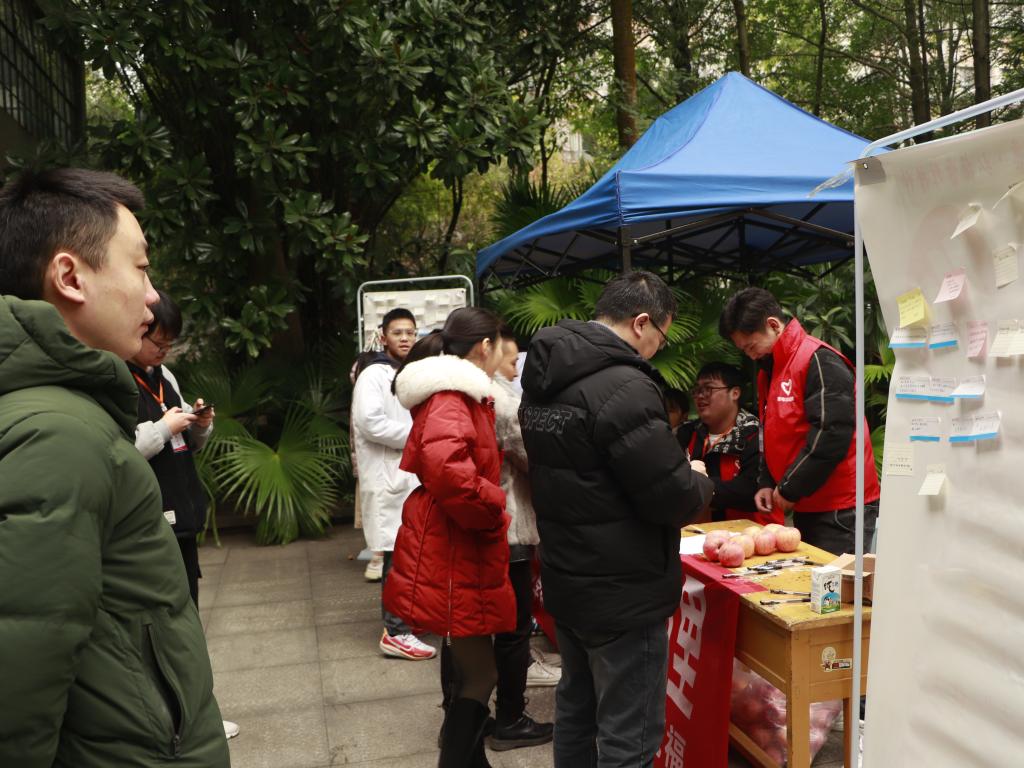 参与活动的同学在留言后就可以现场领取水果、奶糖等小礼品。考研的同学表示这次活动体验很棒,幸福感、获得感都有了提升,对考前的紧张感也得到了有效的缓解。