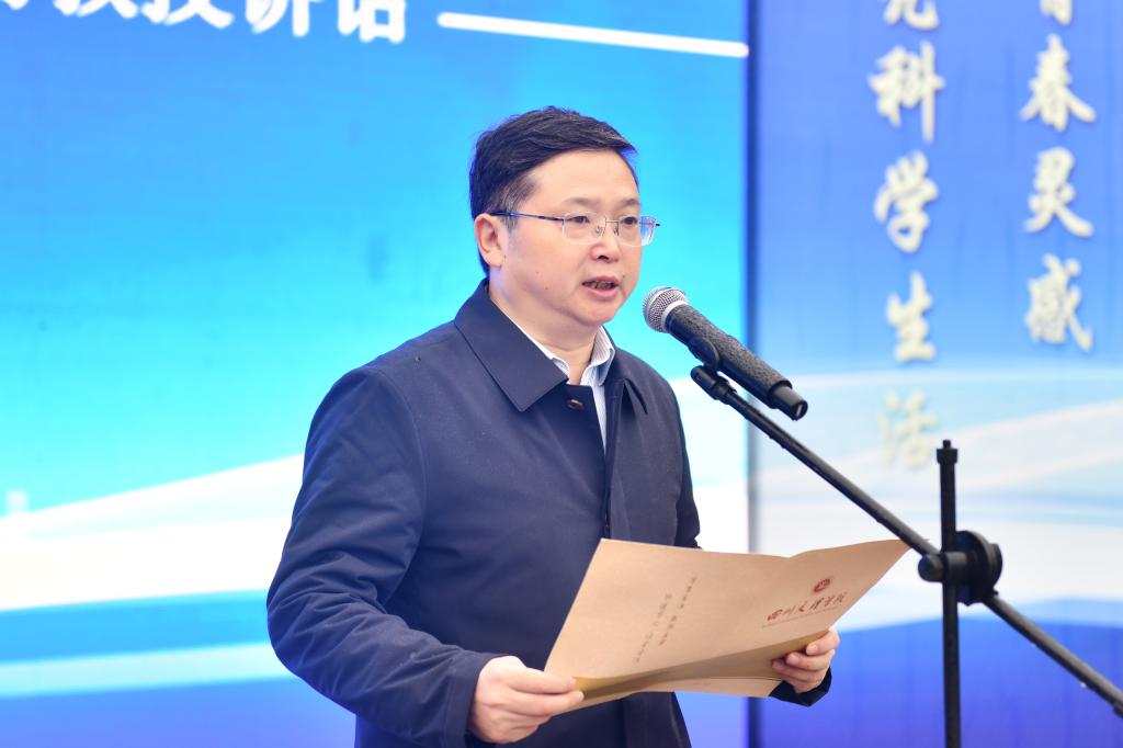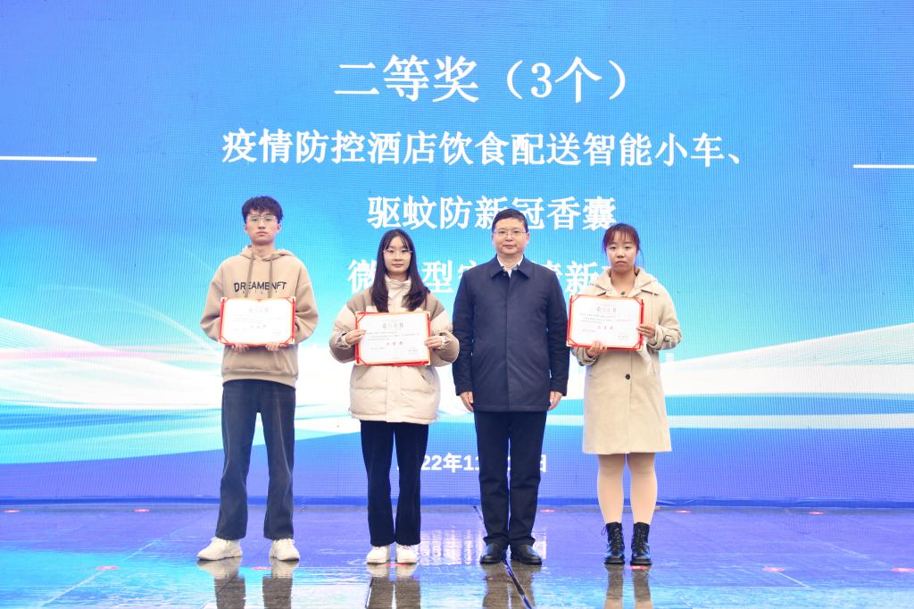 学生工作部部长、学生工作处处长王小奎宣读大学生科技成果项目获奖名单;科技处处长、77779193永利集团党委书记周頔介绍项目验收情况;大学生科技项目优秀指导教师代表侯翔、大学生科技项目获奖项目负责人代表辛雨瑶分别发言。