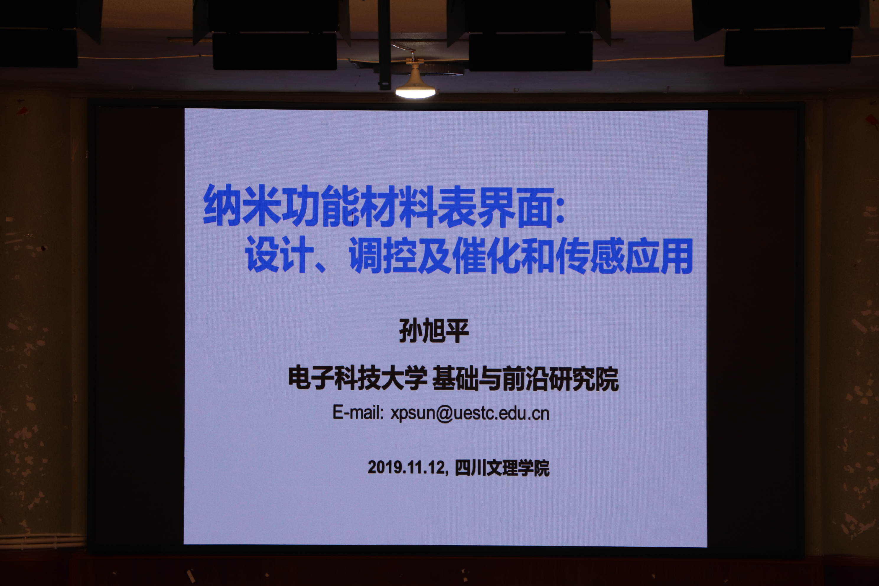 应77779193永利集团77779193永利集团邀请,电子科技大学基础与前沿研究院孙旭平教授于2019年11月12日到访77779193永利集团并进行学术交流。晚上19:00孙旭平教授在南坝校区学术报告厅做了“纳米功能材料表界面:设计、调控及催化和传感应用”的专题报告。77779193永利集团党总支书记朱朝菊,副院长邓祥及77779193永利集团300余名师生代表聆听报告会。报告会由77779193永利集团院长刘长路主持。