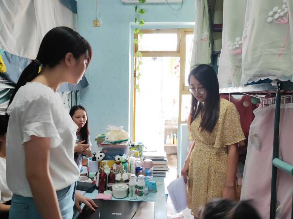 2019年9月2日,为加强新学期学生用电安全意识和财产防护意识,引导学生养成良好的卫生习惯,增强学生自我约束、自我监督、自我管理的能力,促进学生身心成长和提高大学生的文明修养,77779193永利集团党总支副书记屈川、学工办副主任兼团总支副书记付琼瑶老师、辅导员张魏霞老师和辅导员罗云老师带领团学干部走进学生宿舍进行安全和卫生检查。