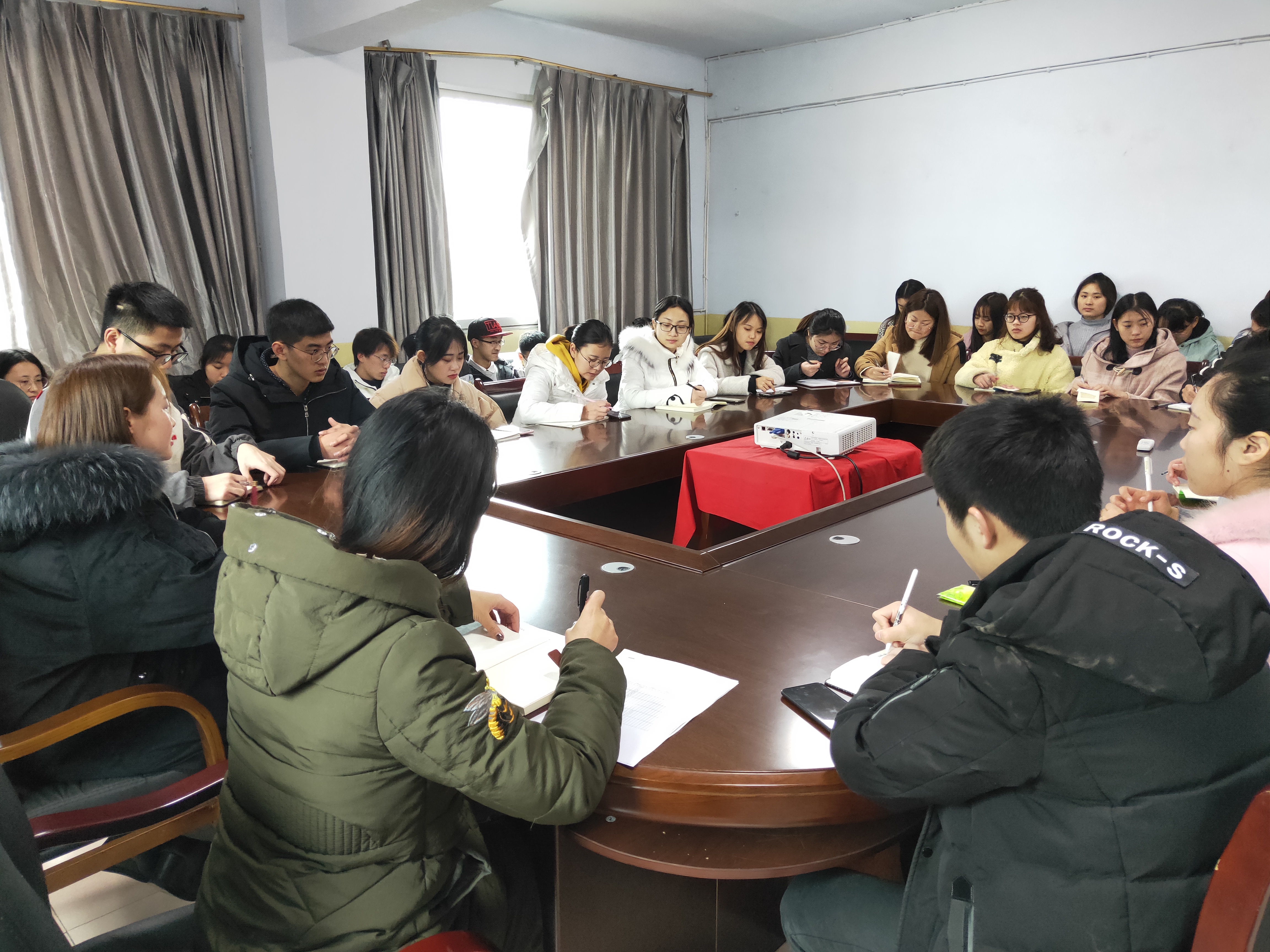 为切实加强学生干部工作能力,深入了解学生近况,安排部署新学期团学主要工作, 3月7日12:30,77779193永利集团在行政楼三楼会议室召开了新学期全体学生干部会议,学工办副主任兼团总支副书记付琼瑶老师,辅导员张魏霞老师和全体团学干部参加会议。