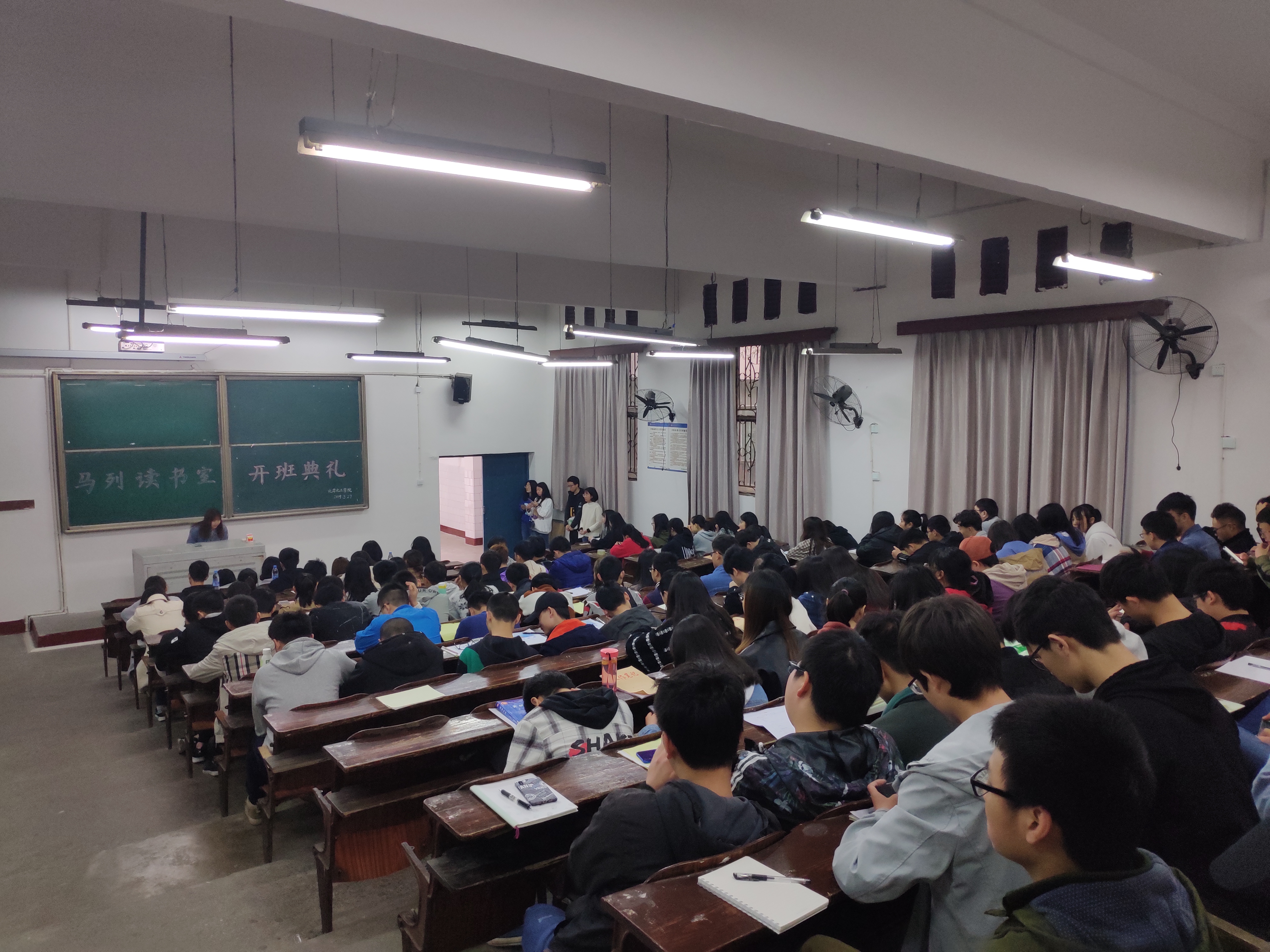 3月27日12:30,77779193永利集团在一教楼111教室举行了第三十四届马列读书室开班典礼,学工办副主任兼团总支副书记付琼瑶老师和邓俊杰、王曦等部分团学干部以及大一100余名学员参加了本次典礼。