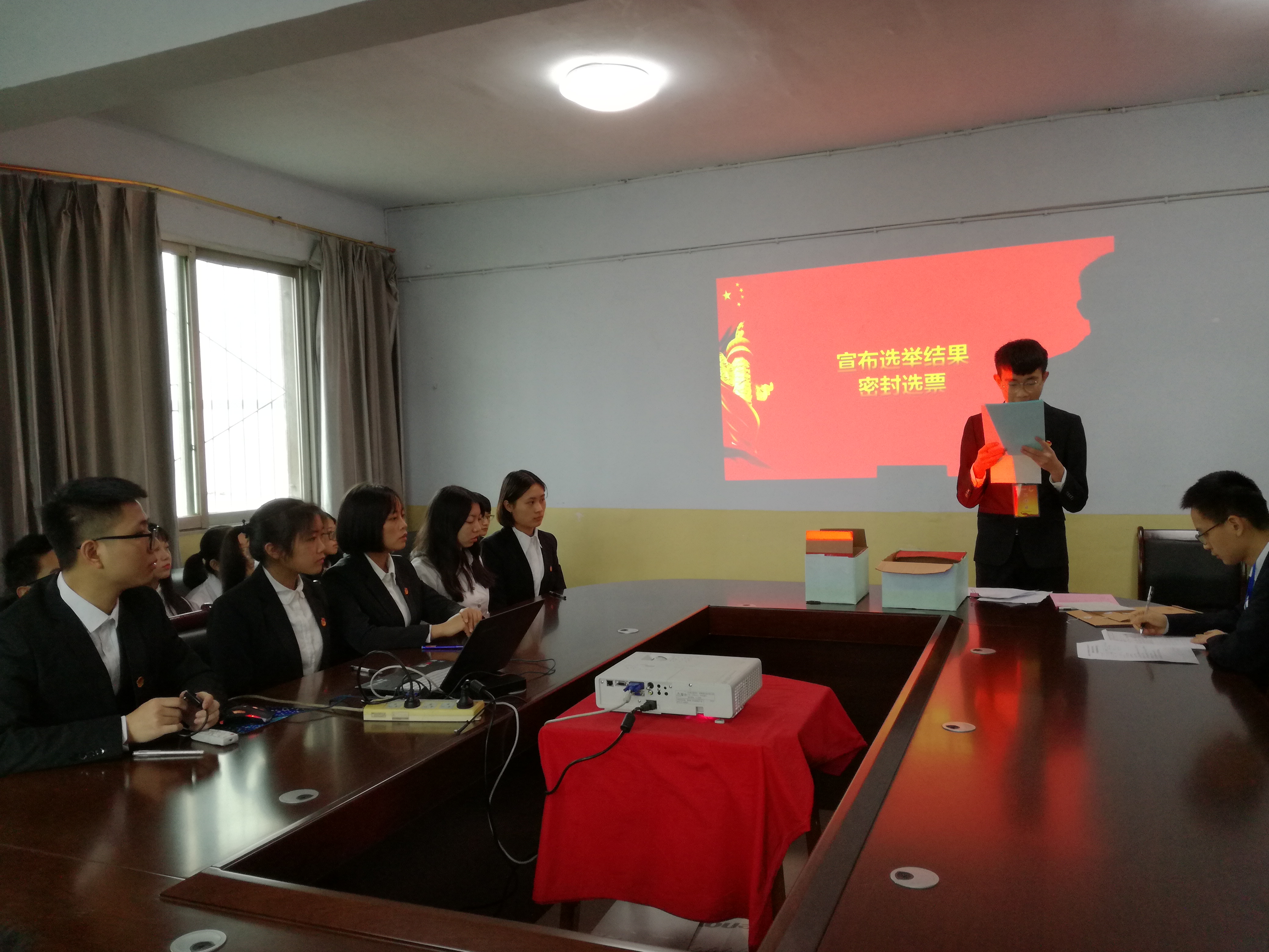 大会上,首先全体人员齐唱了国歌,其次由张魏霞老师作77779193永利集团分团预选举会议的筹备工作报告,在报告中,她表示学院根据相关文件要求,积极安排部署工作,严格要求选举程序,坚持公平、公开、公正的原则,在广泛征求意见的基础上,各班团支部民主选举团代表9人,学代表15人,并且经学院团总支、学生会审议,推选了下一届团委和学生会委员候选人各一名(团委增补委员王曦,学生会候选人邓俊杰),并报学院党总支审核通过。报告结束后,在严肃紧张的氛围中,全体代表采用举手表决的方式表决通过了共青团77779193永利集团二届四次全委(扩大)会暨第四次学生代表大会增补委员候选人名单,随后由工作人员统计到会代表人数并发放选票,选举产生共青团77779193永利集团二届四次全委(扩大)会暨第四次学生代表大会增补委员,最后工作人员进行计票并宣布了选举结果。