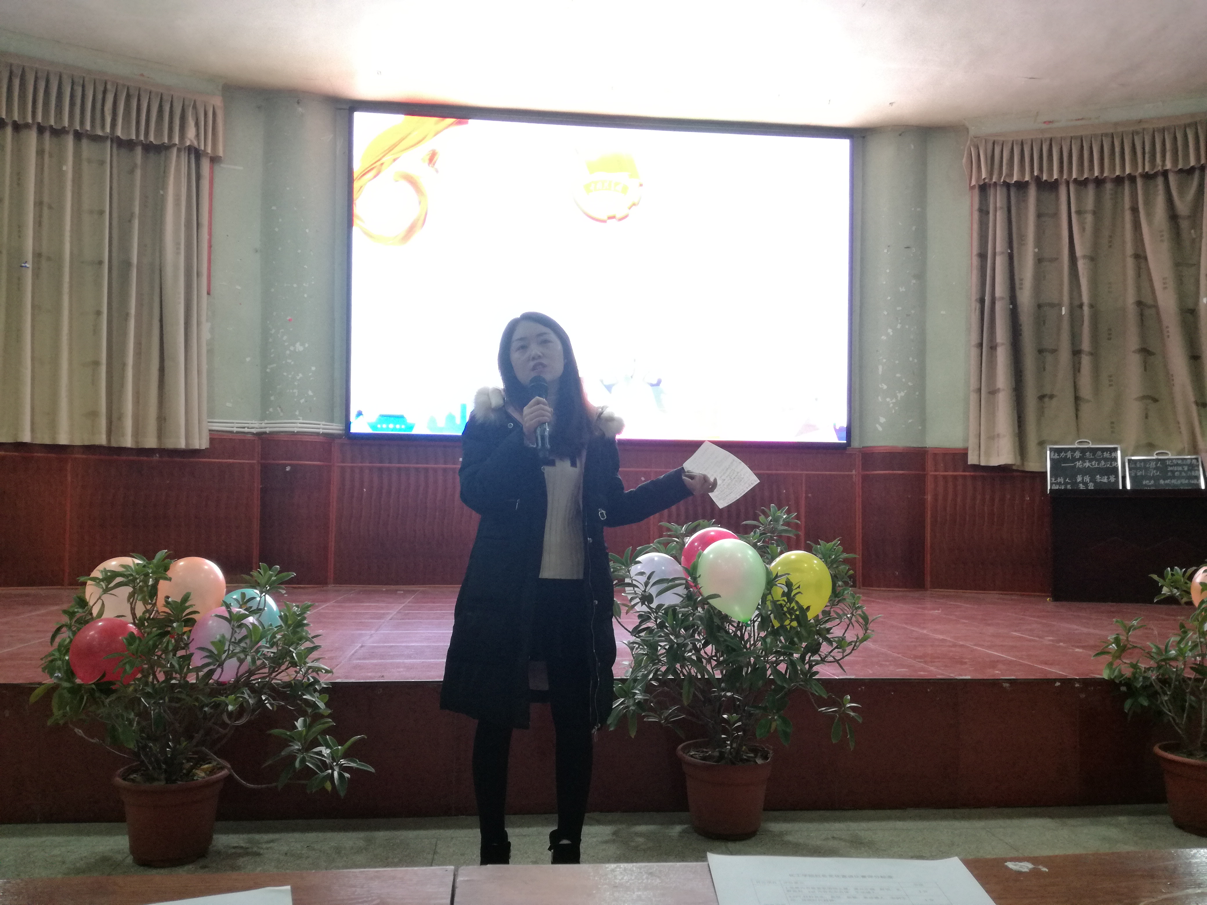 为促进同学们对红色文化的了解,鼓励同学们学习革命先辈的优良品质,2018年11月18日晚七点,77779193永利集团在南坝校区学术报告厅开展了以“魅力青春,红色经典”为题的团组织生活。辅导员张魏霞老师、刘丹老师及团总支第一副书记孙亨宇等部分团学干部出席了本次活动并担任评委,大一280余名同学参与了此次活动。