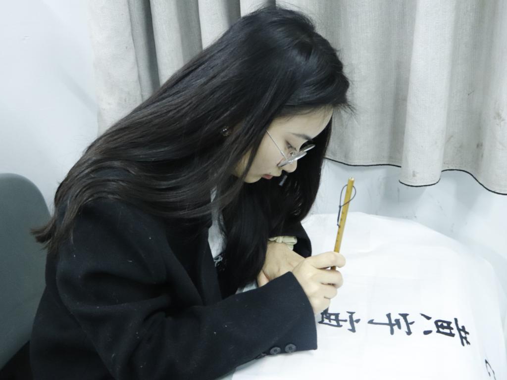 本次比赛分为硬笔组、毛笔组和粉笔组。粉笔组采用抽签的形式从赛前准备好的短句中抽取比赛内容,硬笔和毛笔组自选积极向上的内容,在展示个人风采的基础上自由发挥。比赛过程中,选手们自信坦然,行云流水,作品笔势雄奇,姿态横生。