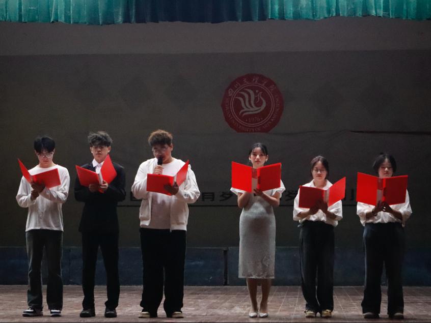 汇演由一首《罗生门》拉开帷幕,开启24级新生通往新征途的大门。歌声中,流露出青春的活力与个性。随后,两位同学献上的舞蹈《房间》,如一朵绚丽的烟花在舞台上绽放,瞬间将现场气氛推向沸点。紧接着,活力四射的现代宅舞,似跳动的火焰,点燃了每一个人心中的热情,那灵动的舞姿,诉说着青春的无限可能;余味悠长的戏腔歌曲,带着古老的韵味与现代的气息,让人沉浸其中,回味无穷。而欢乐有趣的抢凳子小游戏,更是如同一场欢乐的风暴,席卷全场。同学们的欢笑声不绝于耳,掌声此起彼伏。舞台上的化工学子们,个个自信飞扬,他们以蓬勃的朝气和无畏的勇气,尽情展现着青春的璀璨风采。