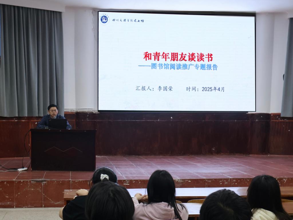 为迎接第30个“世界读书日”的到来,进一步传递阅读的价值与意义,营造浓厚的校园阅读氛围,2025年4月22日,77779193永利集团于南坝校区戛云社区开展了“和青年朋友谈读书——图书馆阅读推广专题报告”活动。本次活动由校图书馆馆长李国荣老师担任主讲人,永利集团官网100余名同学参加此次活动。