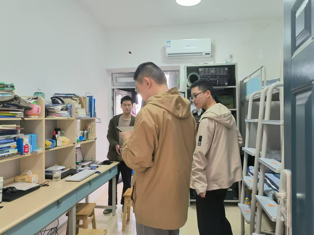 在走访过程中,老师们与学生面对面亲切交流,详细询问同学们的学习生活状态,耐心倾听同学们的需求与建议,积极协调解决学生的实际问题。同时,老师们细致检查了室内设施,观察宿舍是否存在防隐患等问题,确保同学们的住宿环境安全。此外,结合排查出的安全隐患,老师们现场开展了安全宣传教育,用真实的案例警示风险,普及消防疏散、用电安全、防盗防骗等知识,提醒学生们时刻绷紧安全弦,自觉遵守公寓管理规定,养成良好习惯,提高自我防范意识和应急处置能力,确保安全隐患从根源上得到解决。