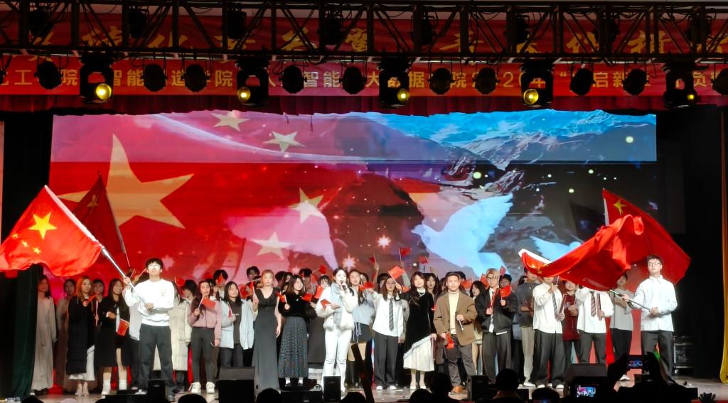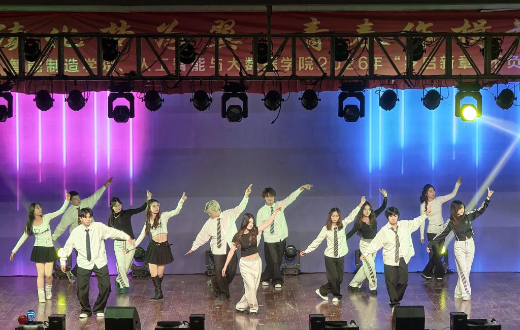 晚会在开场舞《青春之舞·热烈有时》中拉开序幕。整场演出分为“丰碑永铸·精神铭记”“薪火相传·时代新声”“青春飞扬·梦想激荡”“新程壮阔·同心启航”四大篇章。第一篇章以歌唱等形式诠释信仰的力量;第二篇章通过乐队表演与情景剧展现文化传承与青春思考;第三篇章借街舞和音乐剧释放蓬勃朝气,传递敢闯敢拼的青春态度;第四篇章则以致敬与展望为主题,在师生共同合唱《红旗飘飘》的昂扬旋律中,将个人理想融入时代使命,凝聚同心启航的奋进力量,为晚会画下圆满而动人的句点。同学们以真挚的表演和饱满的感染力,点燃了全场对新一年的憧憬,现场掌声与欢笑持续不断,中场抽奖环节更将现场气氛推向高潮。
