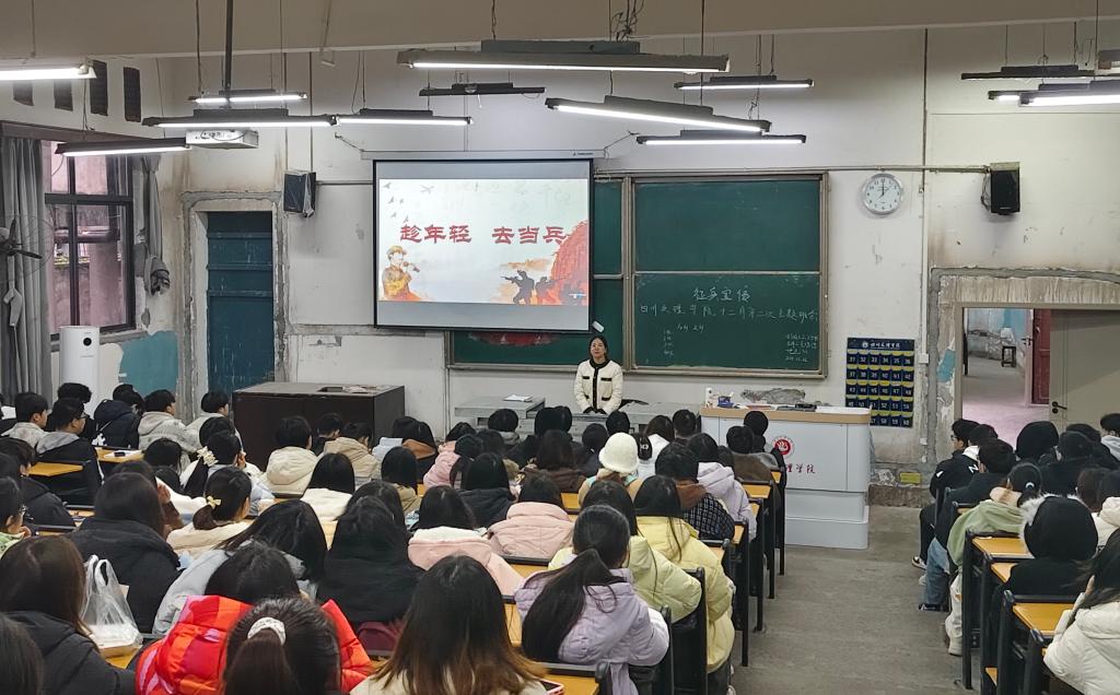 学院各班级以班级为单位,结合自身实际情况,开展征兵宣传主题班会。各班辅导员组织学生认真观看达州市征兵宣传片,向同学们传达本年度征兵工作的最新政策,详细解读了征兵的相关要求以及入伍后的优待政策等重点内容。同时,各班辅导员结合往届学长学姐参军入伍的真实案例,生动讲述了军旅生涯对个人意志的磨砺、能力的提升以及未来职业发展的影响,让同学们对参军入伍有了更直观深刻的理解。班会结束后,同学们纷纷表示,在深入了解了征兵政策的同时,也深刻感受到了作为新时代青年的责任与担当。