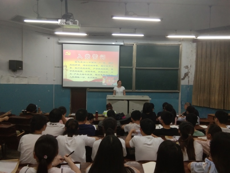 屈川同志向大家讲解了中国共产党的发展历史,通过对中共一大到七大会议内容的讲解,详尽展示了中国共产党建党以来的任务、路线和纲领以及不同历史时期的转变,特别是党在不同历史时期地曲折发展。党课结束后,全体党员重温了入党誓词。最后朱朝菊同志对全院党员提出了三点建议: