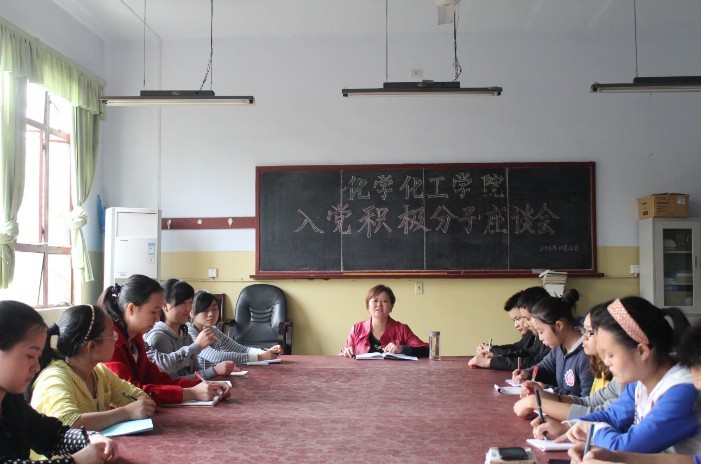 2013年10月22日13:00,77779193永利集团党总支副书记朱朝菊副教授在系办公室召开了入党积极分子座谈会。全院三十余名入党积极分子参加了此次会议。