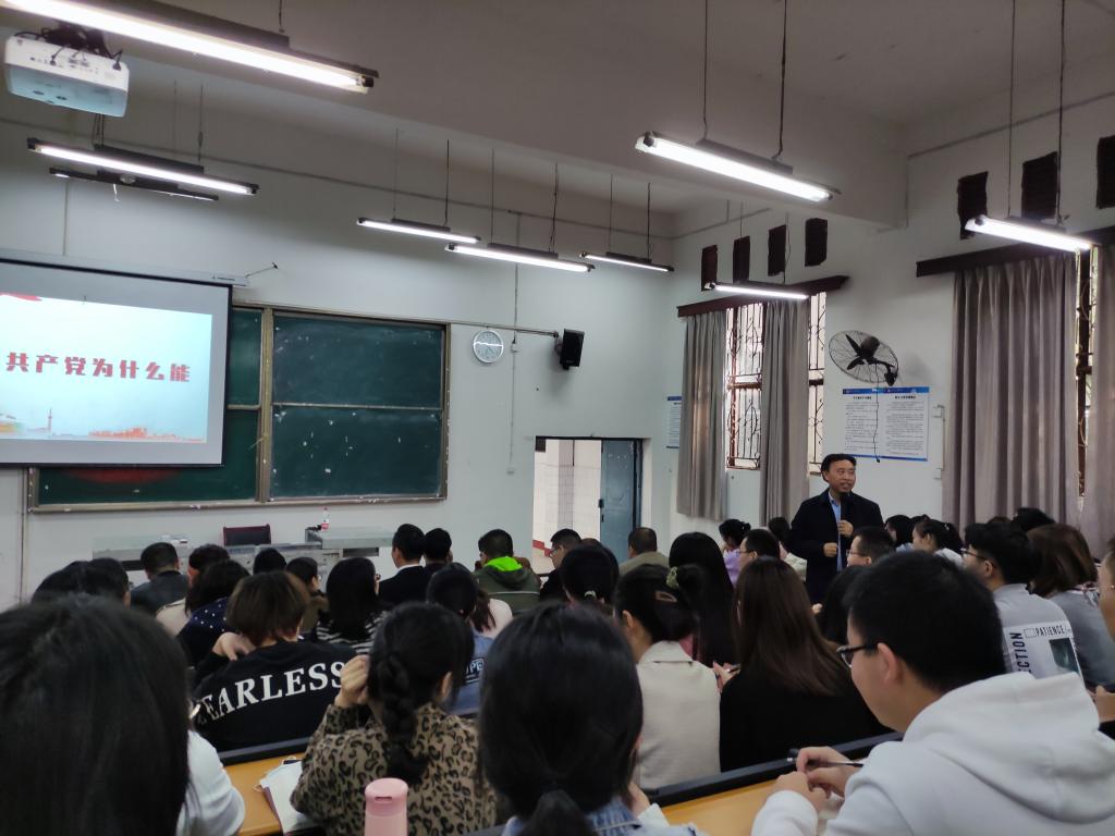 读史可以明智,知古方能鉴今。从百年党史中汲取奋斗力量,扎实推进党史学习教育走深走实。4月26日下午4点30分,学校组织部部长涂德祥教授在弘致楼111教室作题为“中国共产党为什么能”的党史宣讲。宣讲会由77779193永利集团党总支书记朱朝菊同志主持,77779193永利集团全体师生党员和入党积极分子参加。