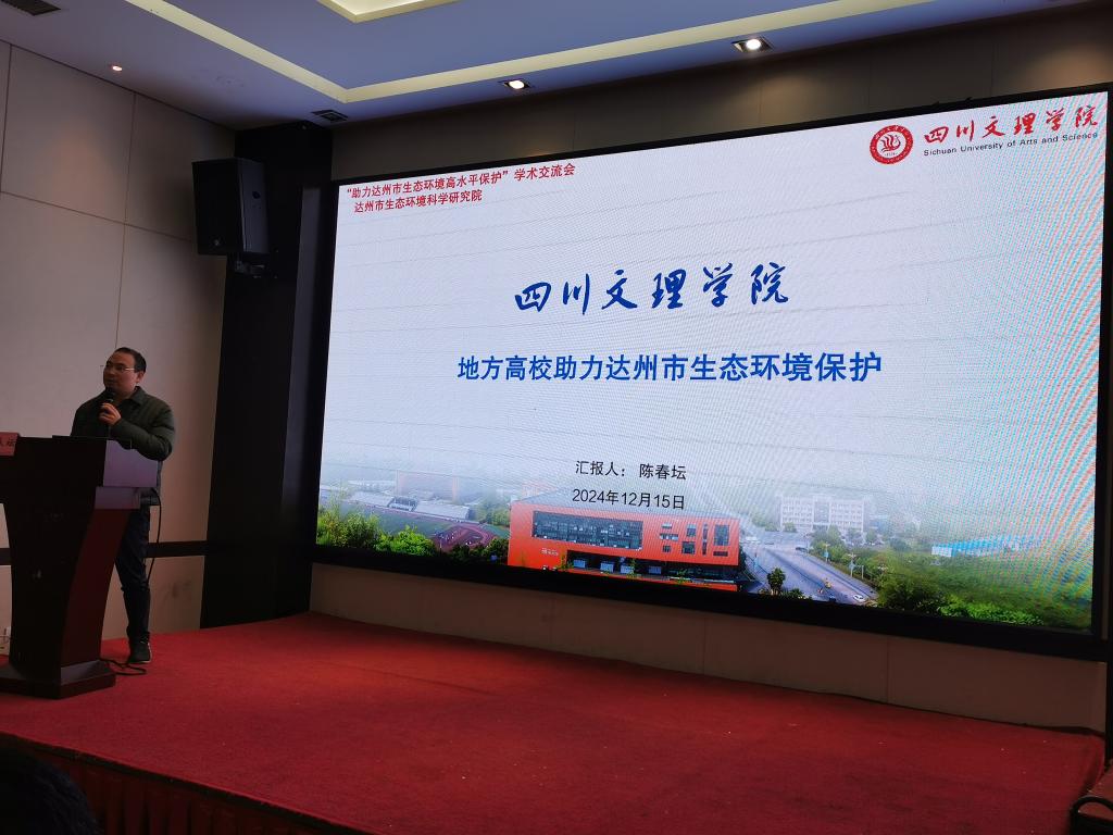 1215日,由达州市生态环境科学研究院主办的环境科技交流、助力达州市生态环境高水平保护学术交流会召开。受主办方邀请学院陈春坛、祝思频、刘高洁等教师代表参加了本次交流会。会议以“助力达州市生态环境高水平保护”为主题,邀请了四川省生态环境科学研究院、四川省环境政策研究与规划院等多个科研单位和高校专家学者参会。