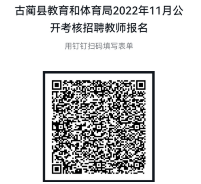 考生自行下载安装钉钉APP,按要求通过注册后登录钉钉,扫描“古蔺县教育和体育局2022年11月公开考核招聘教师报名二维码”(附件1),真实、准确、完整填写《报名信息表》,提交报名表后再使用钉钉扫描“古蔺县教育和体育局2022年11月公开考核招聘教师工作群二维码”(附件2)加入钉钉群,方便后期接收信息。
