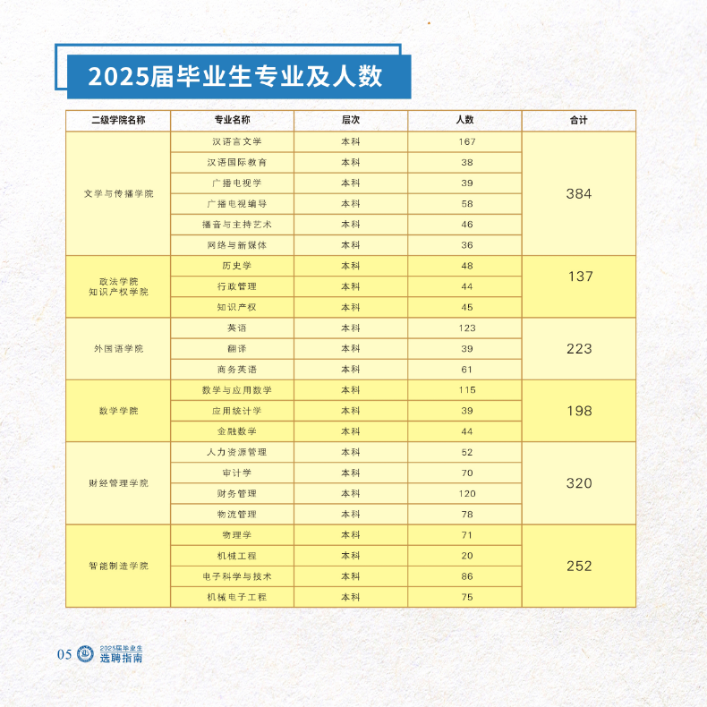 永利集团官网2025届共有56个专业,4122名毕业生,其中55个本科专业,毕业生4078名,1个专科专业,毕业生44名。详见《77779193永利集团2025届毕业生人数及专业》(附件1)。