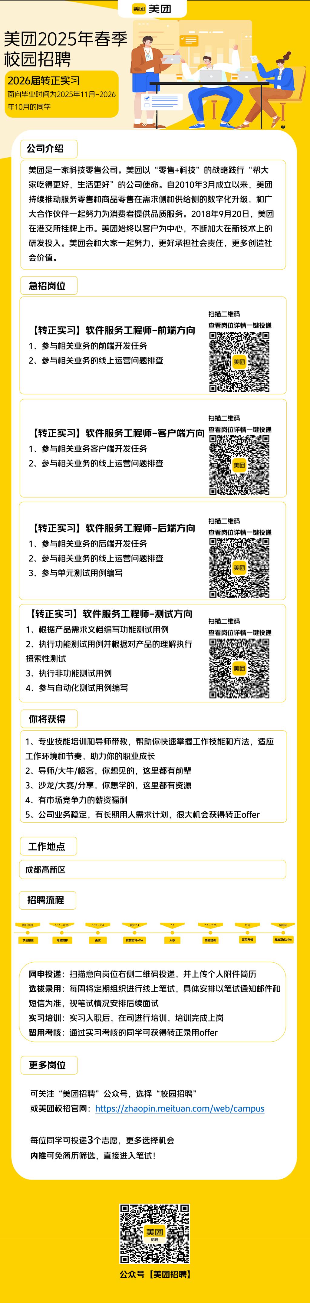 转发“美团2025年春季校园招聘(2026届毕业生实习后转正)”