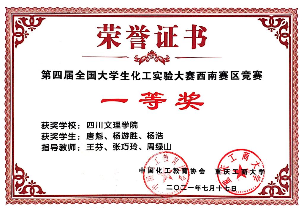 第四届全国大学生化工实验大赛西南区竞赛 |